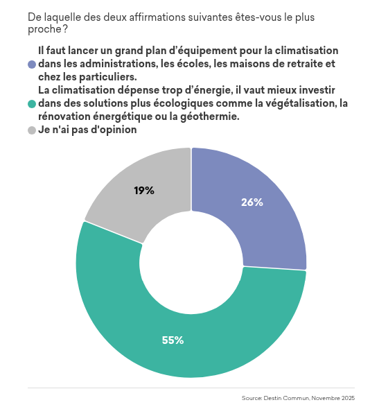 La généralisation de la climatisation a plus de détracteurs que de partisans. Avec 55% des répondants la jugeant trop énergivore et ne souhaitant pas la voir se développer. Les solutions comme celles de Vertuo, présentée dans notre billet sur les ingénieurs et la RSE, ont donc de beaux jours devant elles.