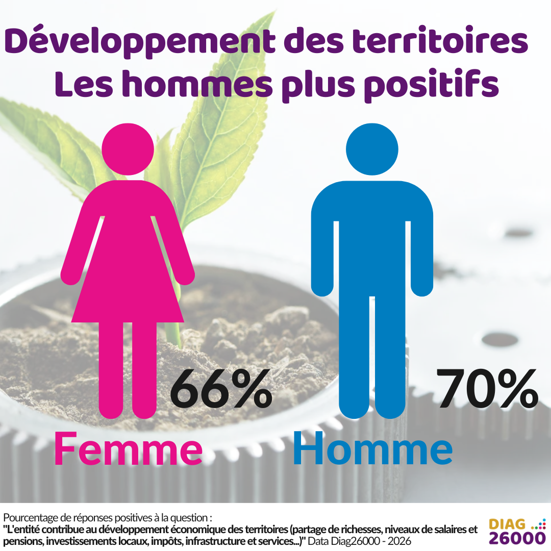 Il faut descendre dans le détail des 44 items de la grille pour trouver des divergences plus importantes. C’est sur la question de la santé des habitants que cet écart est le plus grand. Si globalement l’avis des femmes reste positif, l’écart et de plus de 5 points avec l’avis des hommes. Il s’agit bien ici de la santé globale des habitants, partie prenante externe à l’organisation, et pas de la santé et sécurité des collaborateurs sujet sur lequel l’écart est de moins de 3 points.