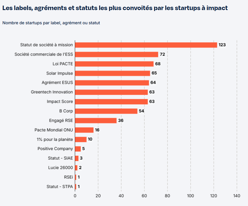 Si vous consultez le site, la synthèse indique un chiffre de 83,9 % des startups ayant obtenu au moins un label ou agrément valorisant leur impact. Cependant, là encore, l’addition des chiffres du tableau n’amène qu’à 646 labels, soit 51% des startups interrogées.